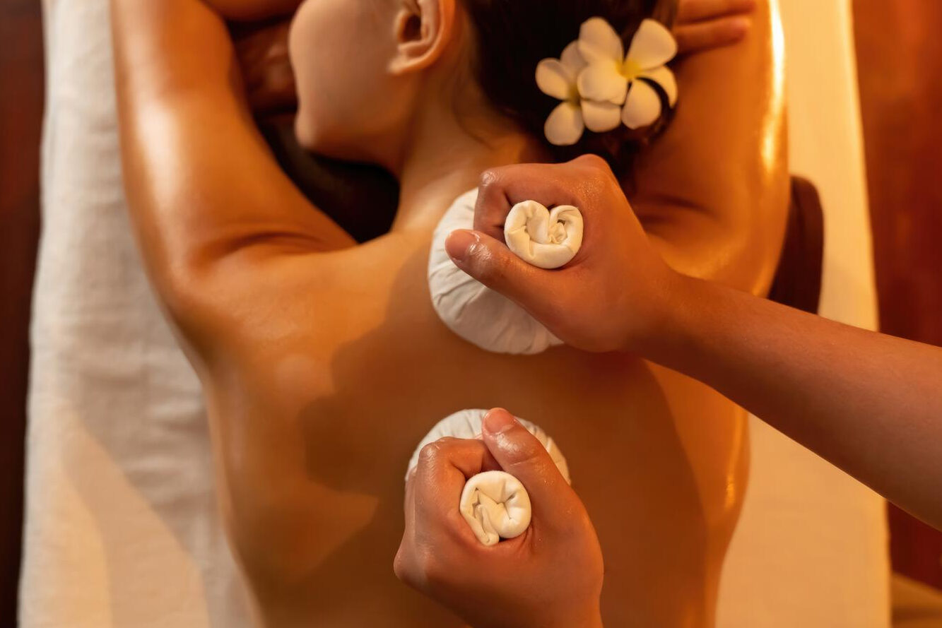 Bei der Thai-Kräuterkompressenmassage werden mit verschiedenen thailändischen Kräutern gefüllte Kompressen gedämpft und auf verschiedene Körperteile aufgelegt. Die Wärme und Feuchtigkeit der thailändischen Kräuter entspannt die Muskeln, lindert Schmerzen und fördert die Durchblutung.